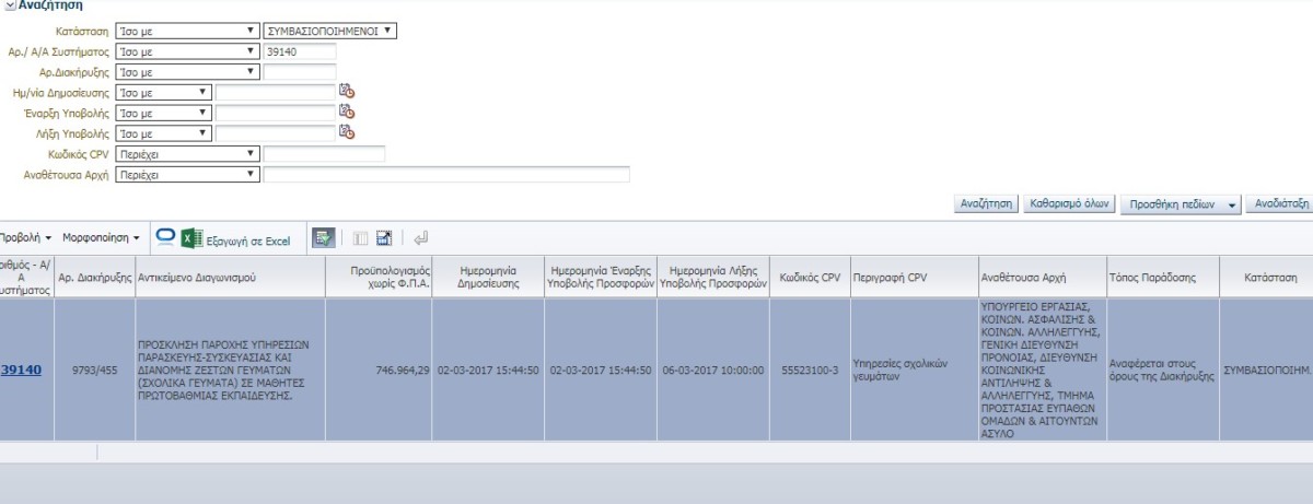 Η προκήρυξη δημοσιεύεται στη Διαύγεια την Πέμπτη 02-03-2017, στις 15:44:50, και δίνεται ως καταληκτική ημερομηνία Υποβολής Προσφορών η 06-03-2017, στις 10:00:00. Ουσιαστικά δηλαδή μια εταιρεία θα έπρεπε να υποβάλει την προσφορά μέσα σε λιγότερο από 24 εργάσιμες ώρες.