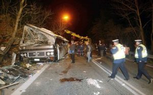Τα νοβοπάν εκτινάχτηκαν και χτύπησαν με σφοδρότητα το σχολικό λεωφορείο με αποτέλεσμα 21 μαθητές να βρουν τραγικό θάνατο, ενώ άλλοι 9 να τραυματιστούν σοβαρά.