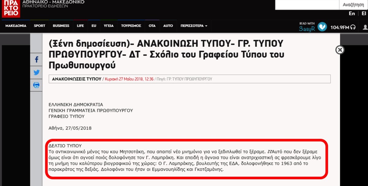 Ο Μητσοτάκης το 1963 ήταν αγέννητος. Και ο Τσίπρας επίσης. Όμως δεν εμποδίζει και τους 2 να αντιδικούν για τη δολοφονία του Λαμπράκη. Ο Λαμπράκης ήταν βουλευτής της ΕΔΑ και σκοτώθηκε απο το παρακράτος της εποχής.