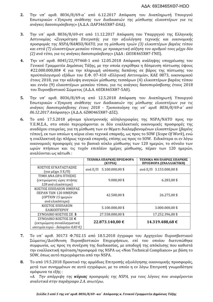 Φυσικά όπως ήταν αναμενόμενο επιλέγουν τη δεύτερη τη μη τεχνικά επαρκή, λόγω κόστους τη στιγμή που έπρεπε να πάρουν 9 ελικόπτερα ακόμα,ενώ για να δικαιολογήσουν την απόφασή τους επικαλούνται τα στατιστικά στοιχεία του 2016 και του 2017 για το κοστολόγιο.