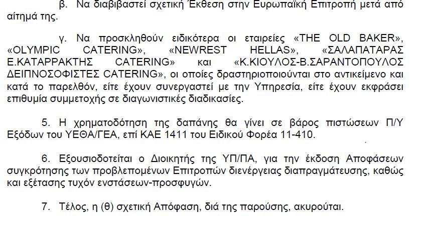 Στη συνέχεια αποφασίζεται να προσκληθούν  5 μονο εταιρείες και να γίνει απευθείας διαπραγμάτευση για να βρεθεί ο μειοδότης που θα αναλάβει το έργο.