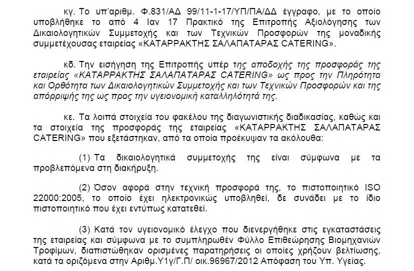 Πράγματι με έγγραφο που χαρακτηρίζεται επείγον (!) διαβάζουμε στη συνέχεια οτι στο διαγωνισμό προσέρχεται μόνο μια εταιρεία με κάποιες παρατηρήσεις υγιειονομικού περιεχομένου που πρέπει να τις βελτιώσει για να πάρει το έργο.